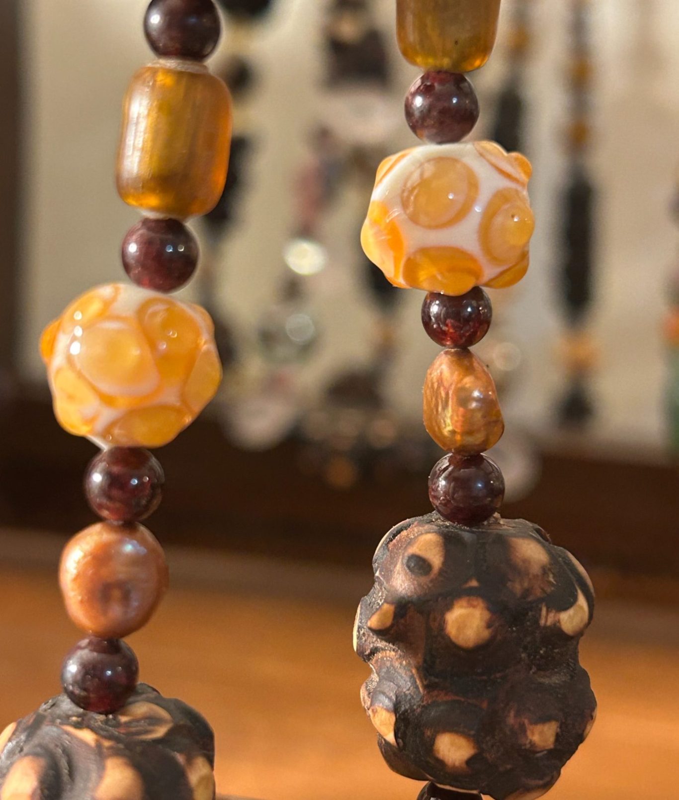 Hand-made wooden and glass beads are the fundamentals of our jewelry designs.