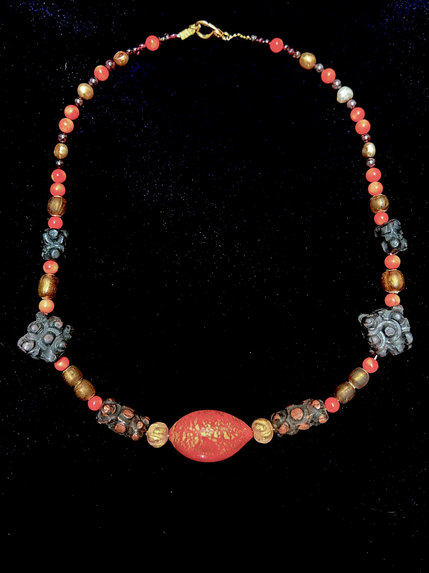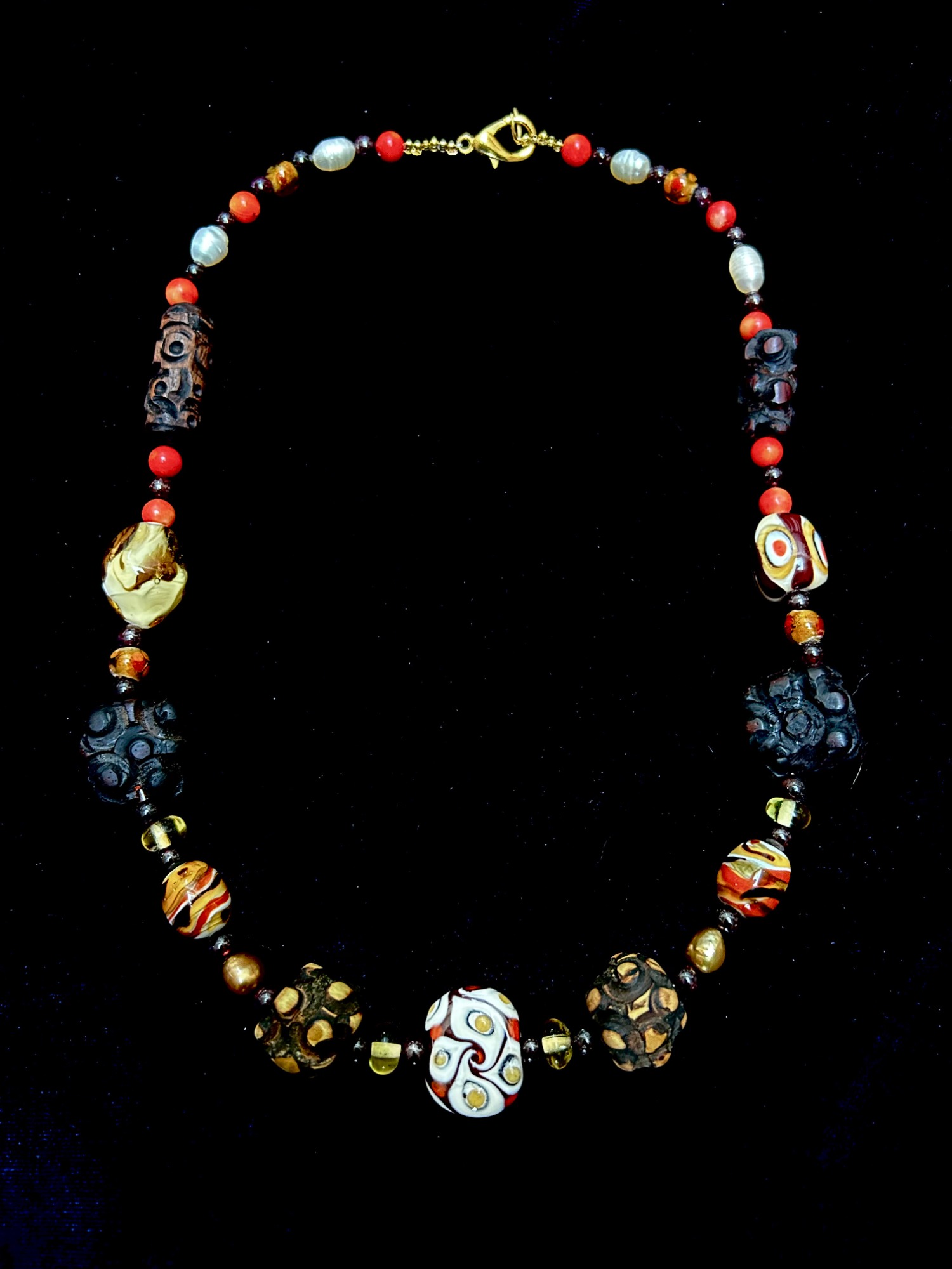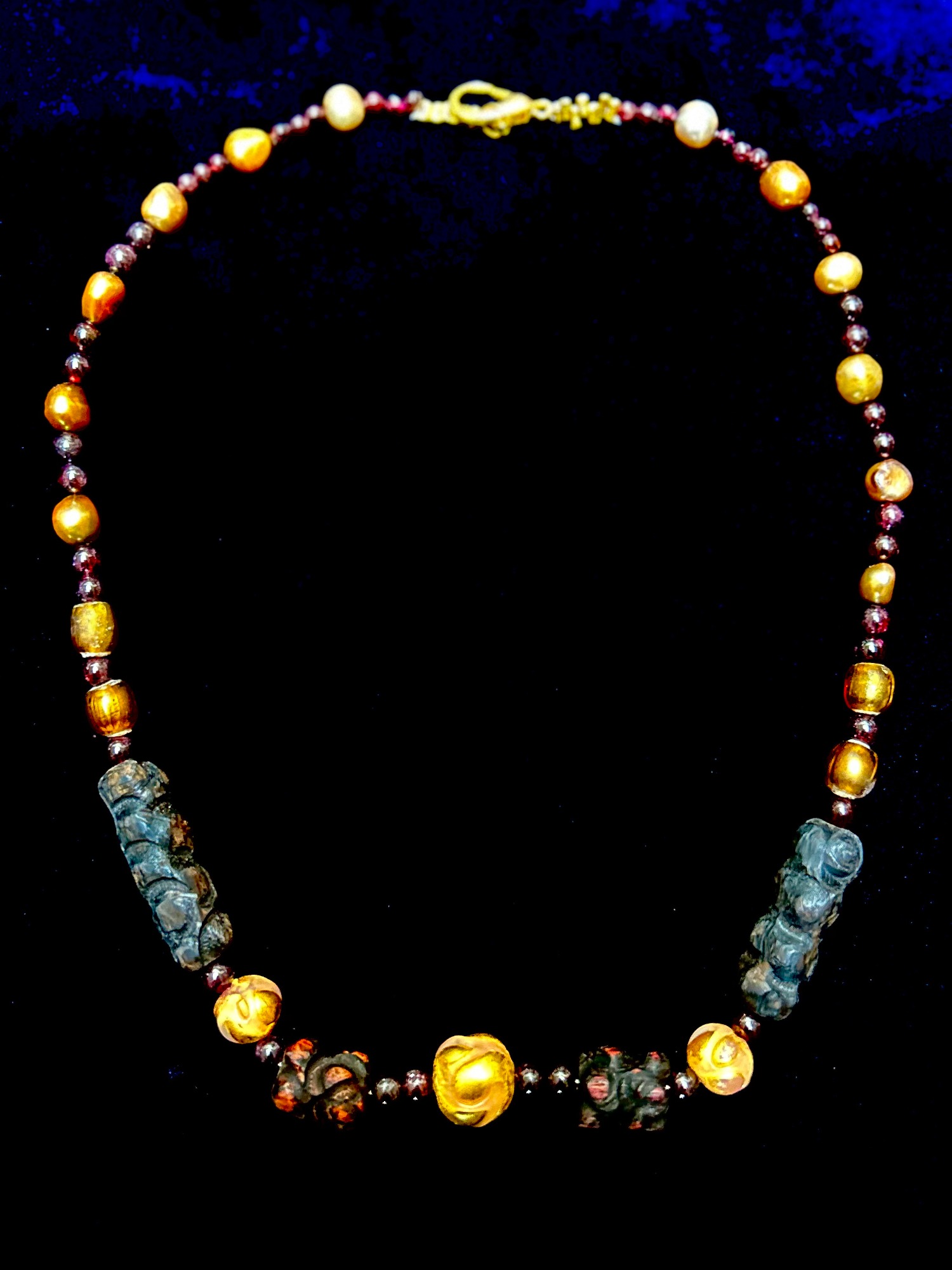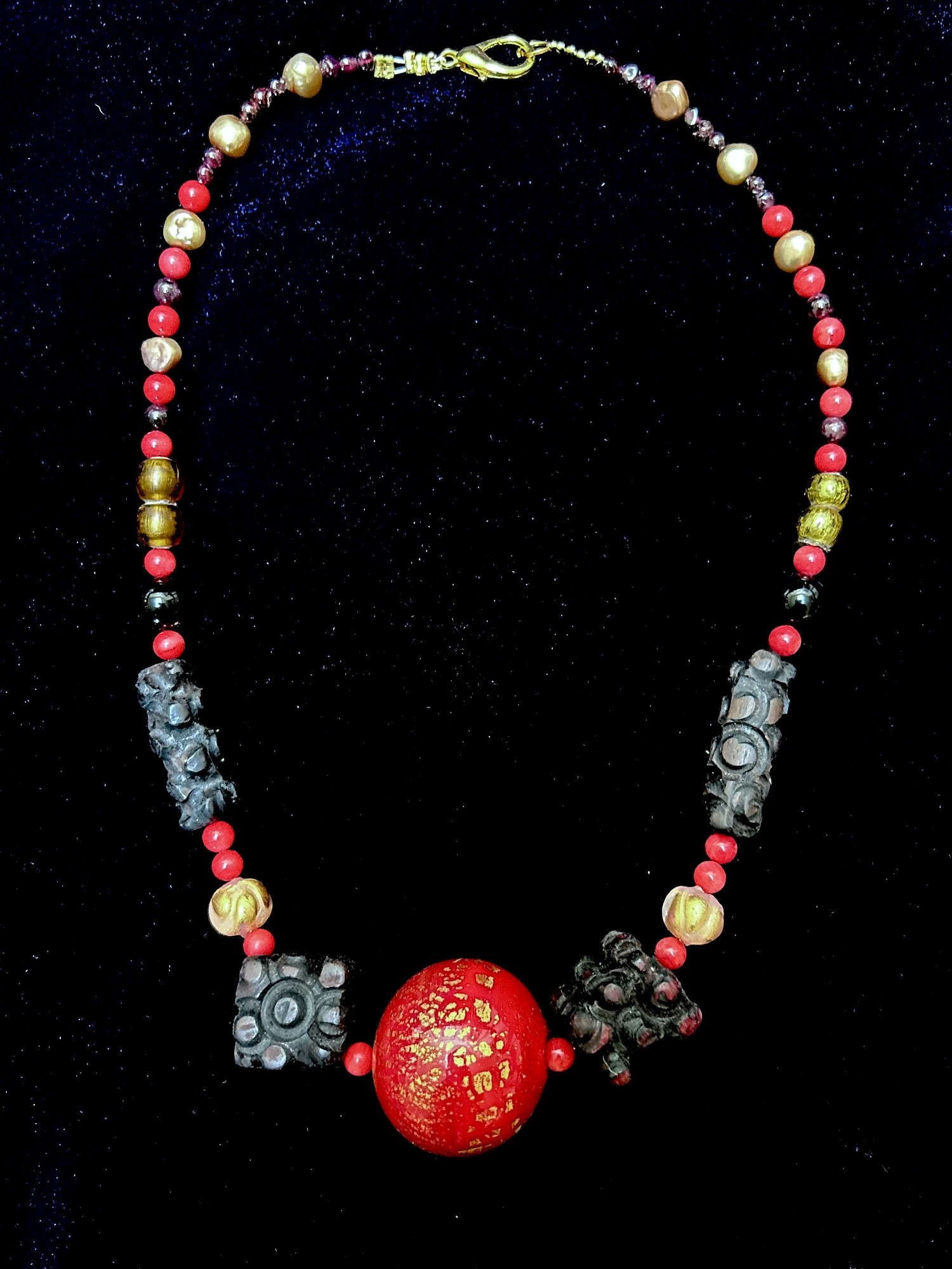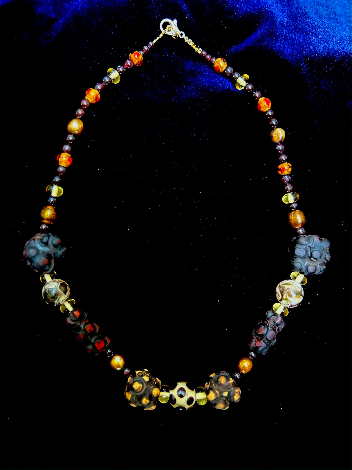 The blown and gilded glass Venetian beads were purchased from artist Lucio Bubacco in the 1980s. The multicolored glass Venetian beads are custom-made for the necklaces by Emanuela Chimonton in Venice. Emanuela is currently a Docent in Lucio Bubacco's Gallery.