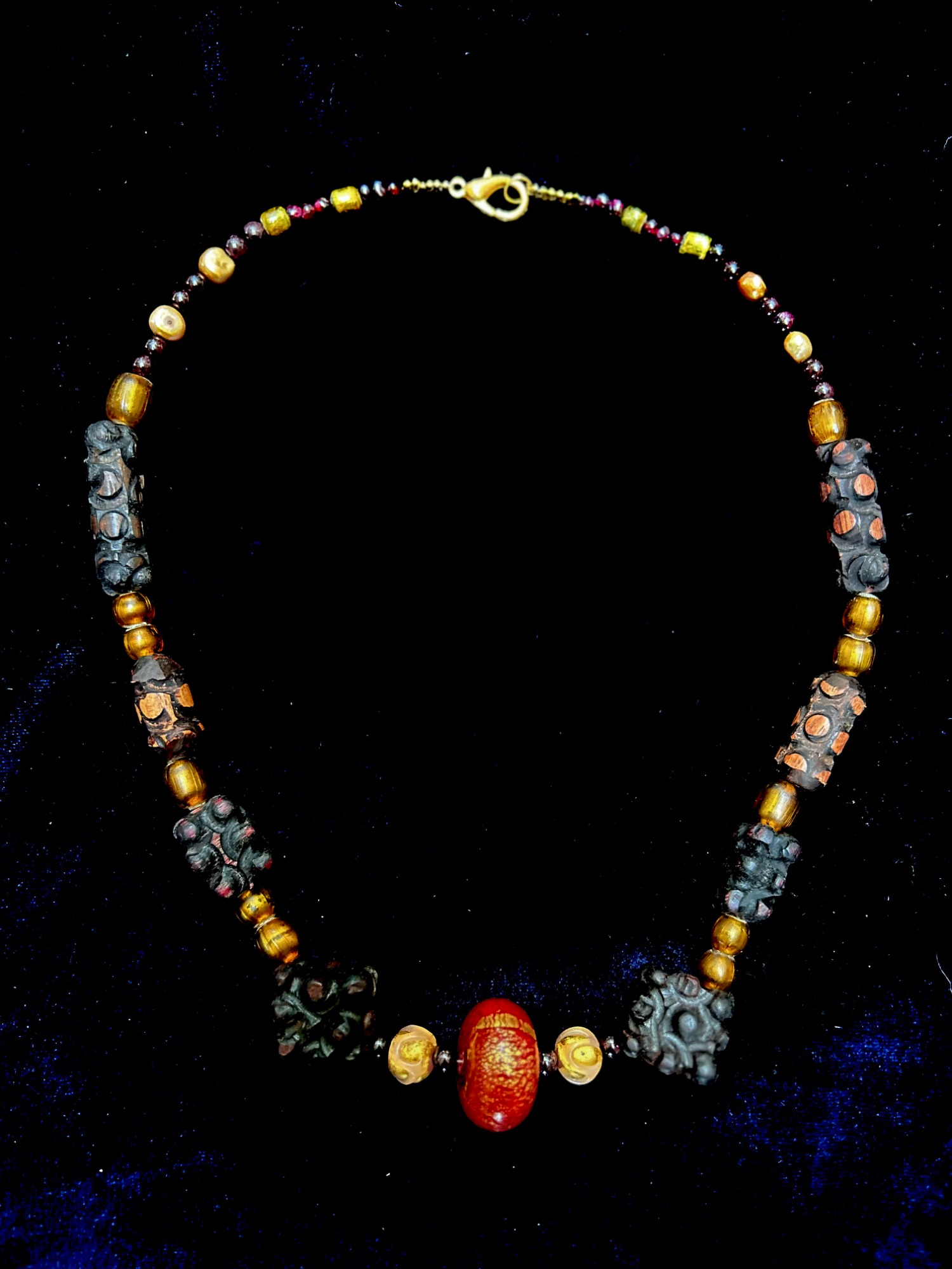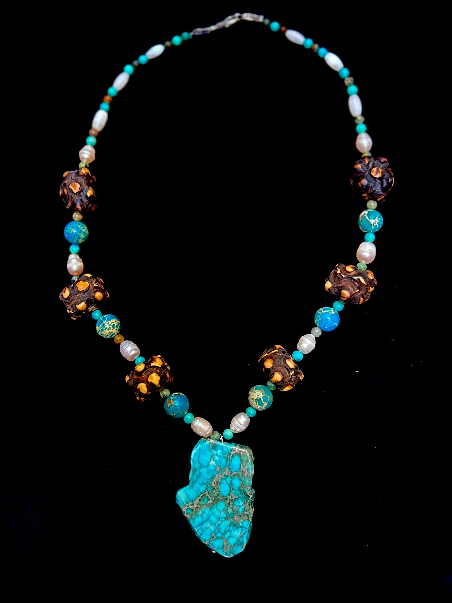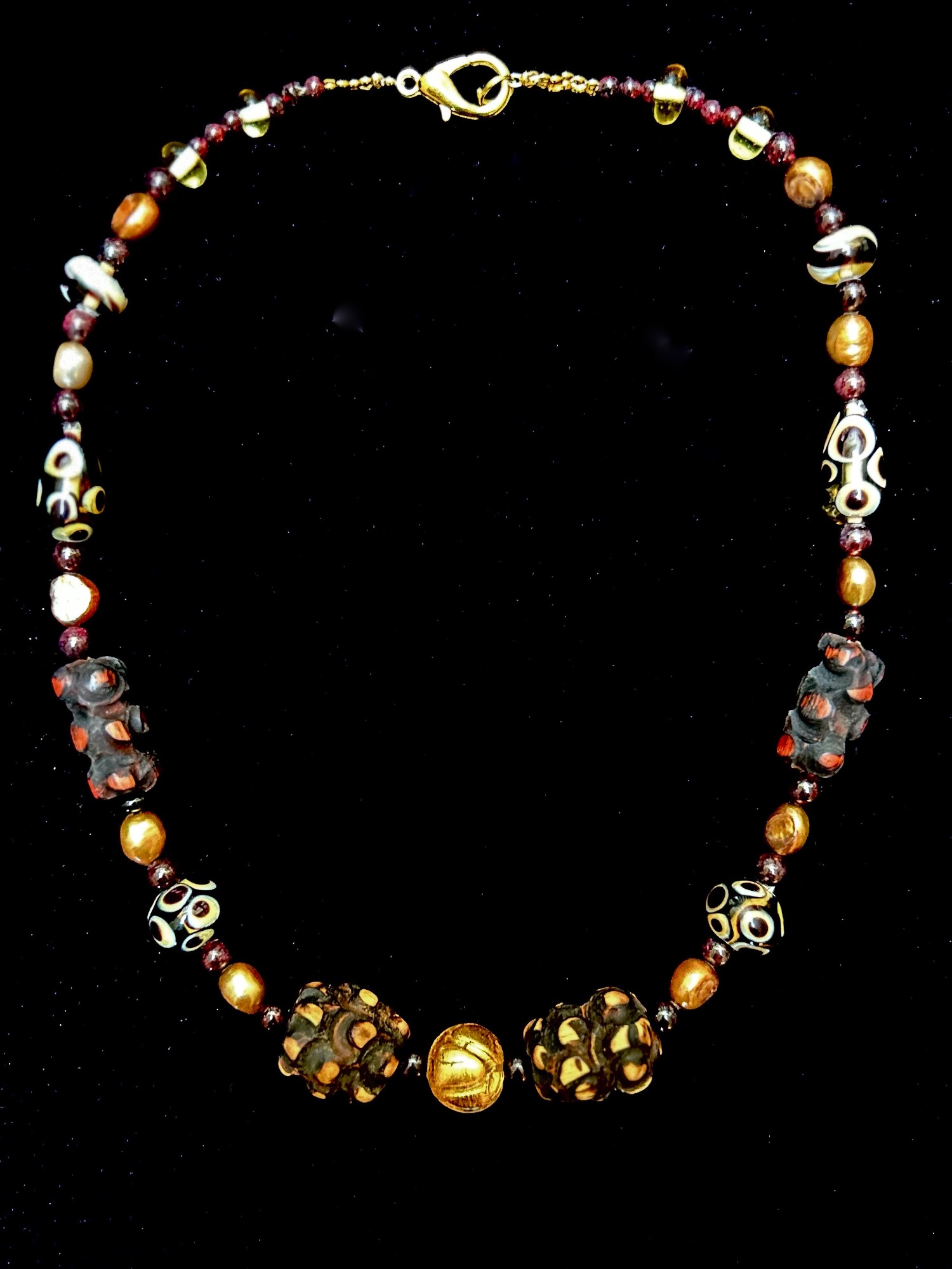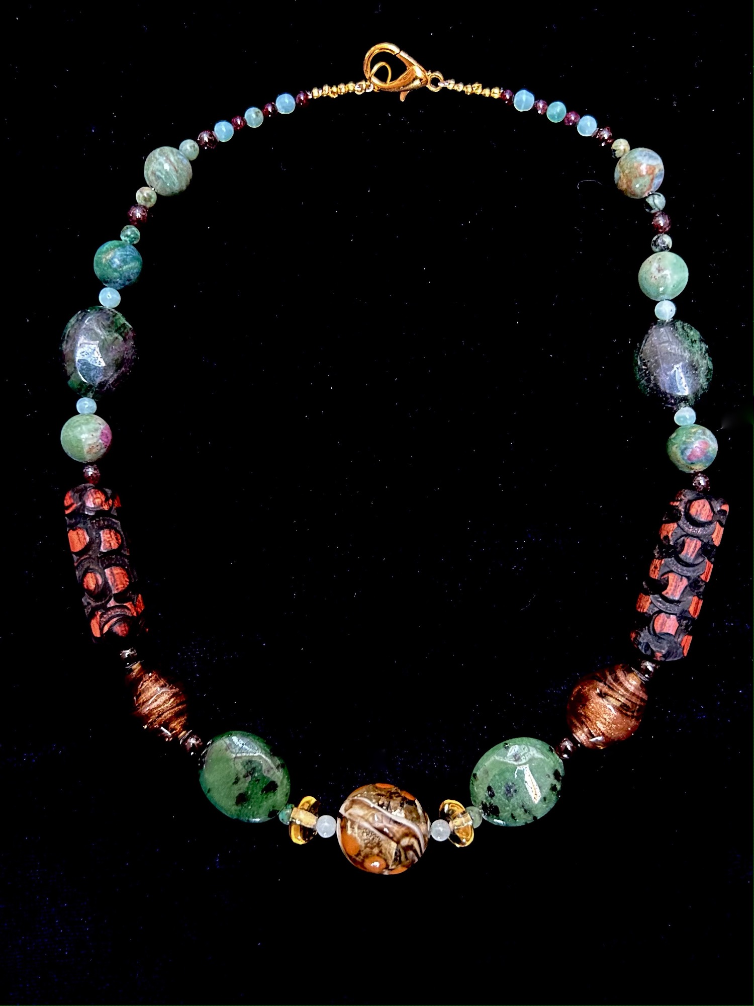 The blown and gilded glass Venetian beads were purchased from artist Lucio Bubacco in the 1980s. The multicolored glass Venetian beads are custom-made for the necklaces by Emanuela Chimonton in Venice. Emanuela is currently a Docent in Lucio Bubacco's Gallery.