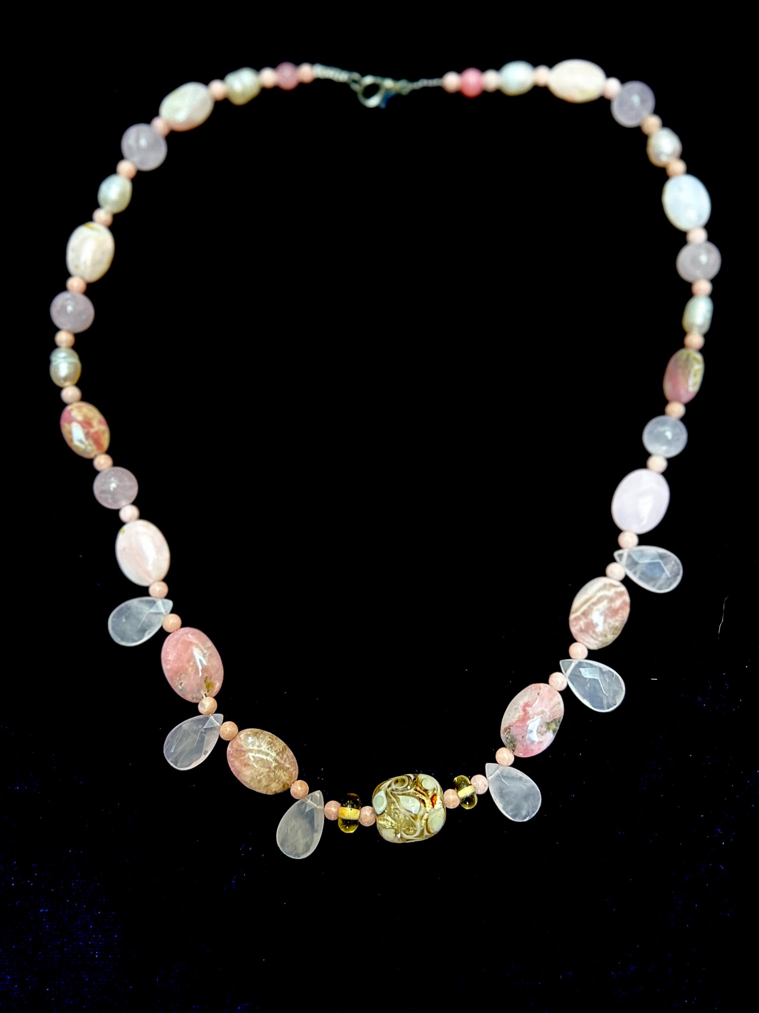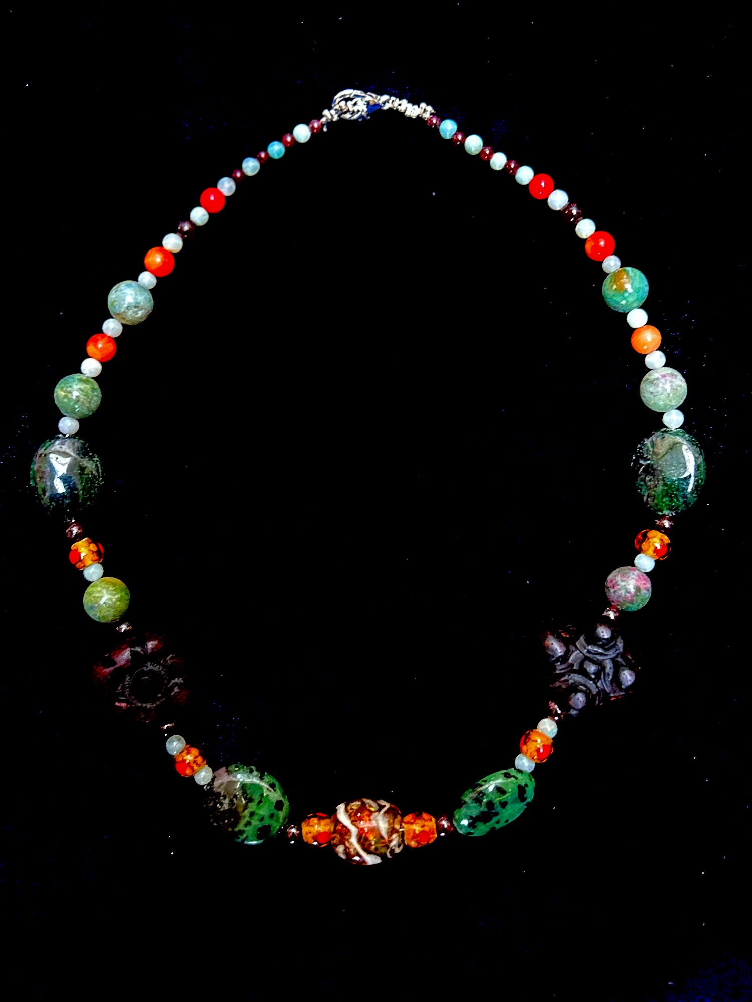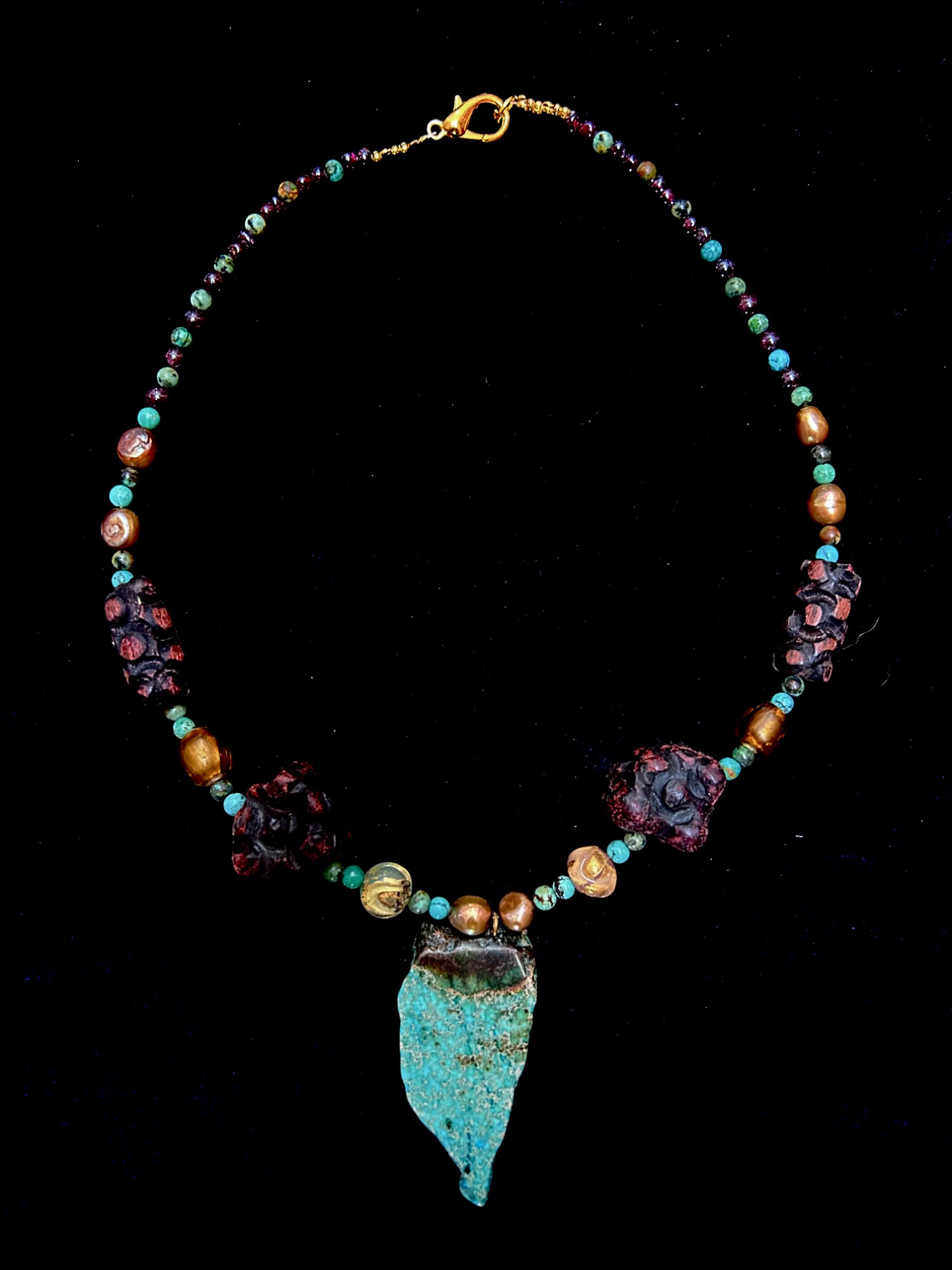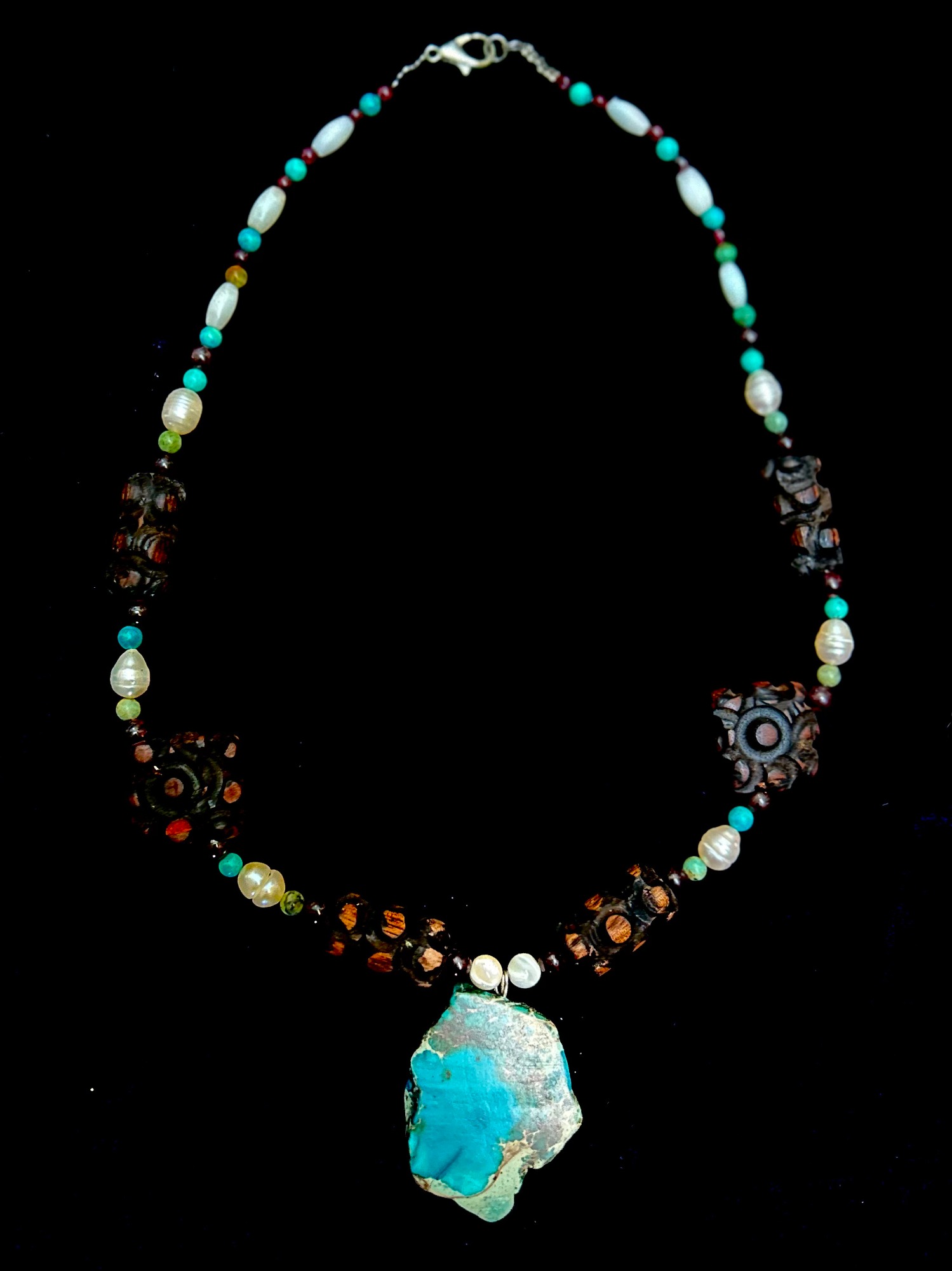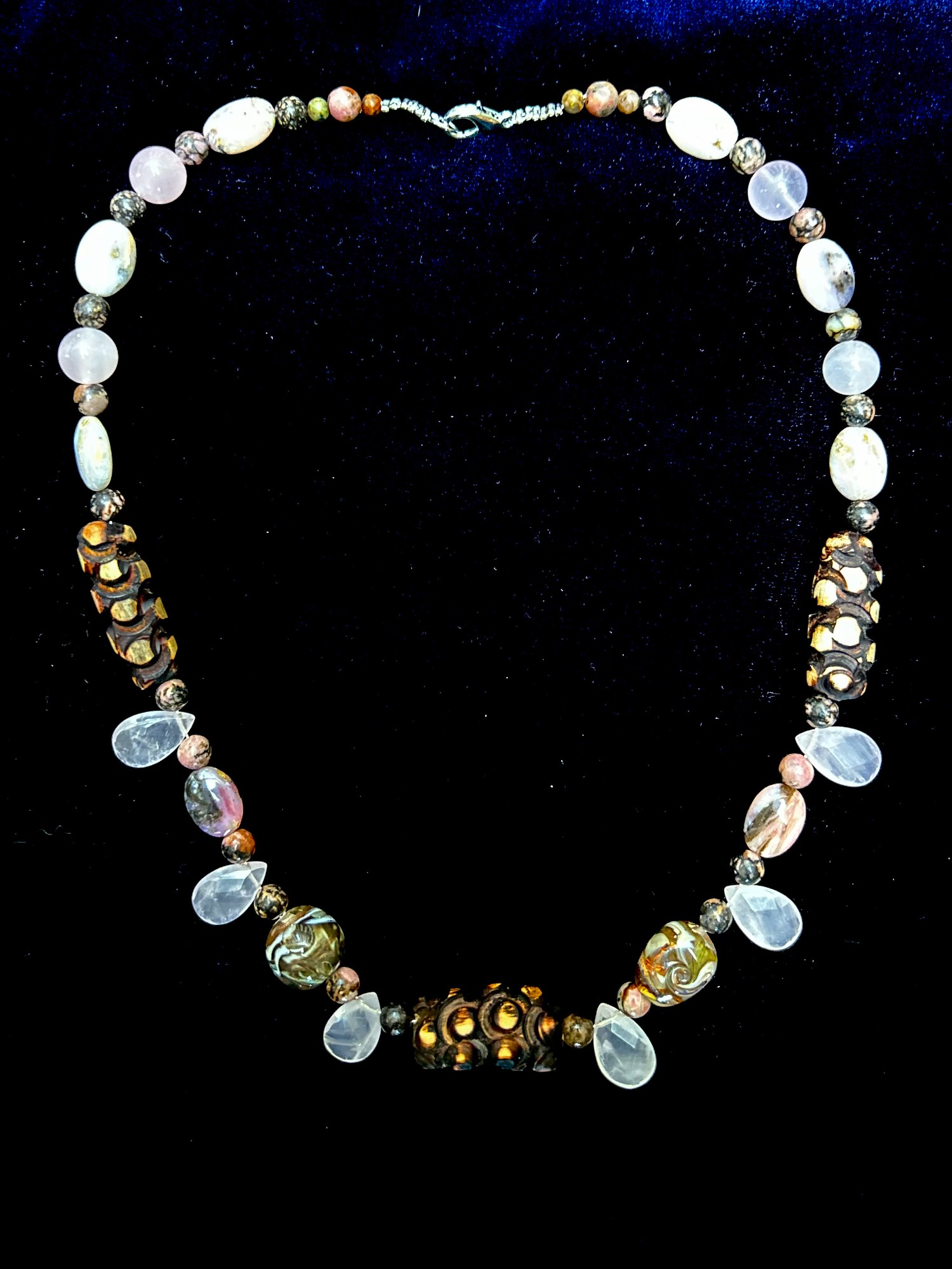 The blown and gilded glass Venetian beads were purchased from artist Lucio Bubacco in the 1980s. The multicolored glass Venetian beads are custom-made for the necklaces by Emanuela Chimonton in Venice. Emanuela is currently a Docent in Lucio Bubacco's Gallery.